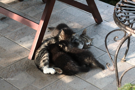 Pak najednou ty kuličky byly dvě. Úplně stejný a úplně stejně bóžový. No dobře, Modroočko a Kulíšek. Pak ale z pod dřevníku vylezla ještě třetí kulička, černá s ďábelskýma očima, ze kterých koukaly jen lumpárny - Salem, nebo Salemka (protože od dob čarodějnice Sabriny jsou všechny černé kočky automaticky Salem) - a já začínala být zoufalá. Ale tady jsme naštěstí mohli přestat počítat. A po bojích a zvykání si na sebe jsme mohli začít nabízet tři holčičky k adopci.